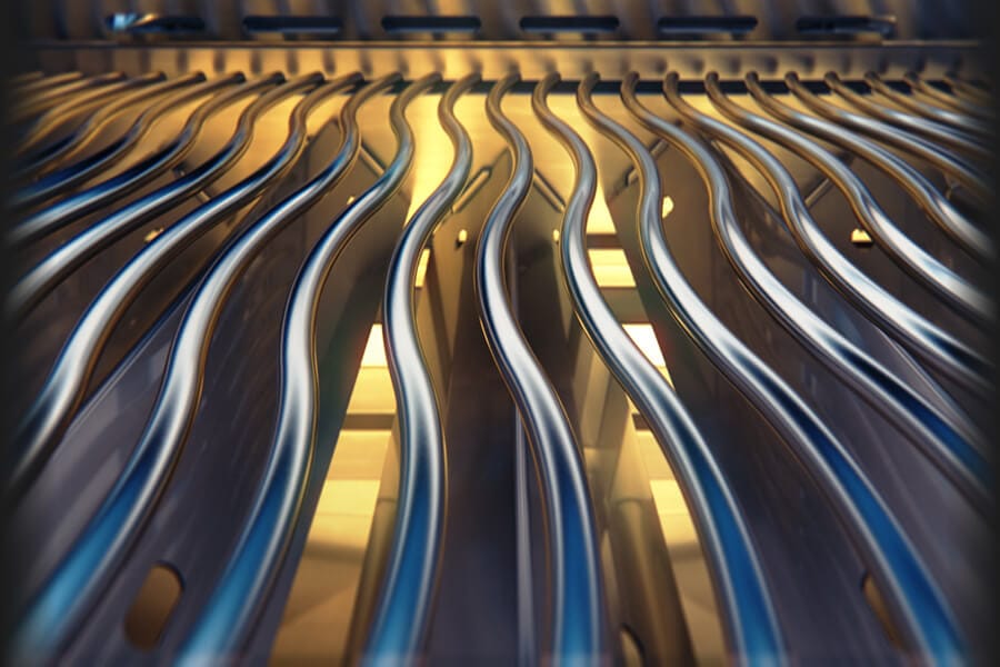 • Dujinis grilis NAPOLEON Rogue RPS625RSIBPSS-2 turi „Wave“ vingiuoto dizaino pagrindines kepimo groteles, pagamintas iš nerūdijančio 7 mm storio plieno.